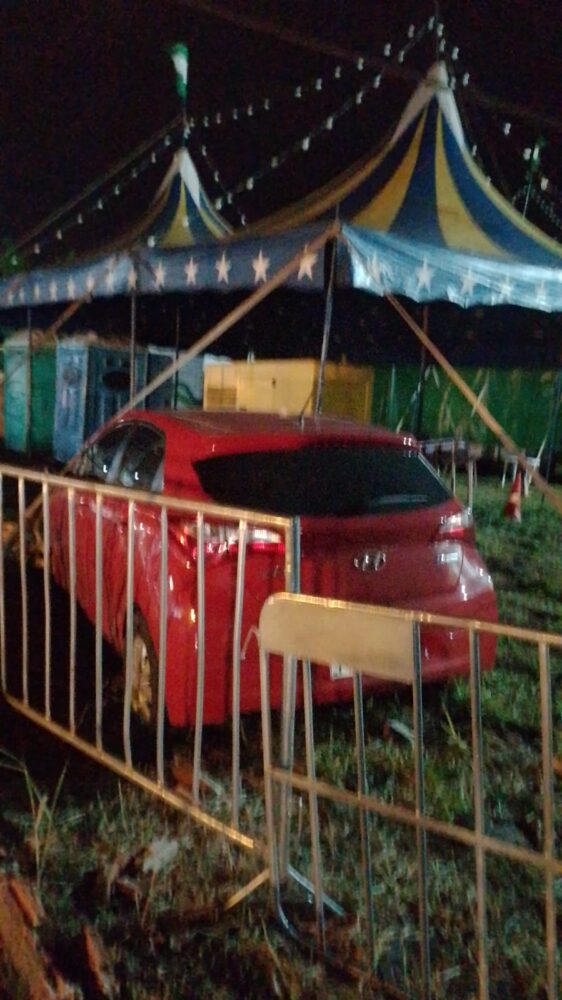 Um carro invadiu as dependências do circo “Mundo Mágico”, instalado na avenida Luiz Saldanha, em Ourinhos-SP, na noite de sábado, 20. De acordo com o boletim de ocorrência, o automóvel Hyundai, modelo HB20, atingiu parte da grade de proteção do local. Ninguém se feriu.