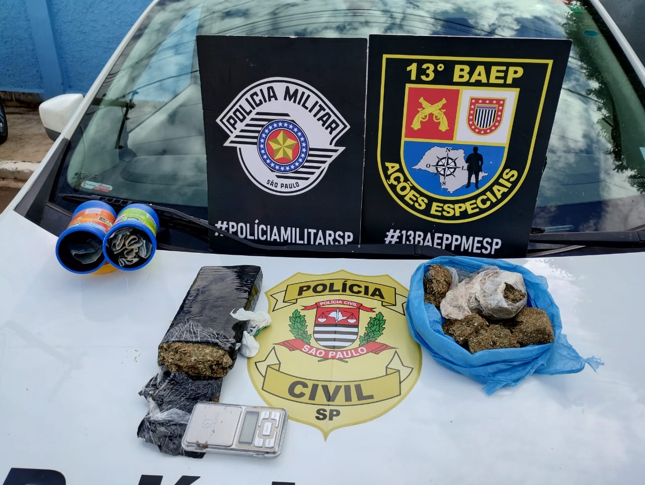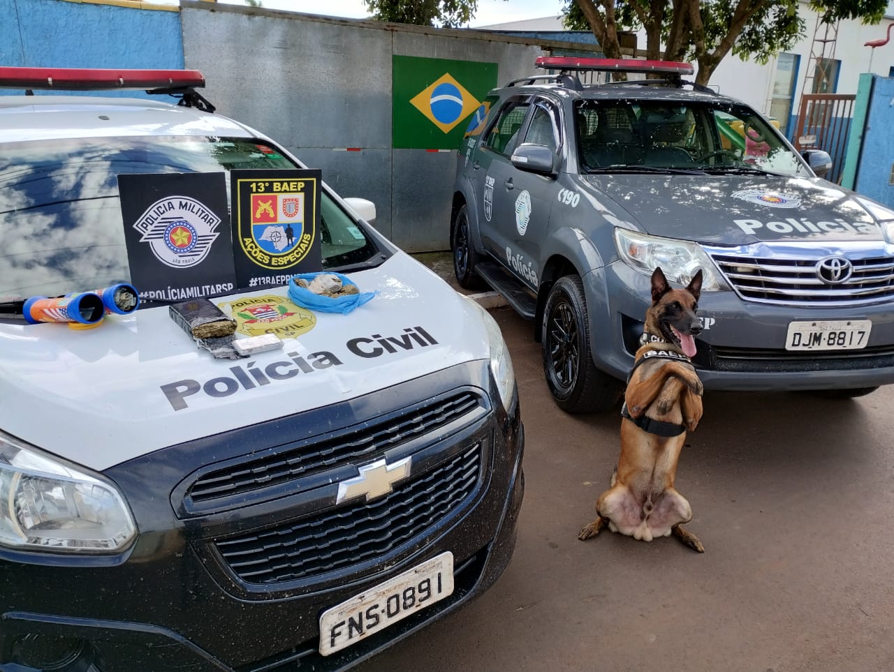 Desta forma, nesta terça-feira, 25, foi dado cumprimento ao mandado de busca e apreensão na residência, com o apoio dos policiais militares da cidade e do BAEP/SCRP com o cão farejador, logrando êxito em localizar na residência duas porções de cocaína, uma porção de maconha e o valor de R$ 322,00, que o indiciado afirmou ser dinheiro da venda das drogas.