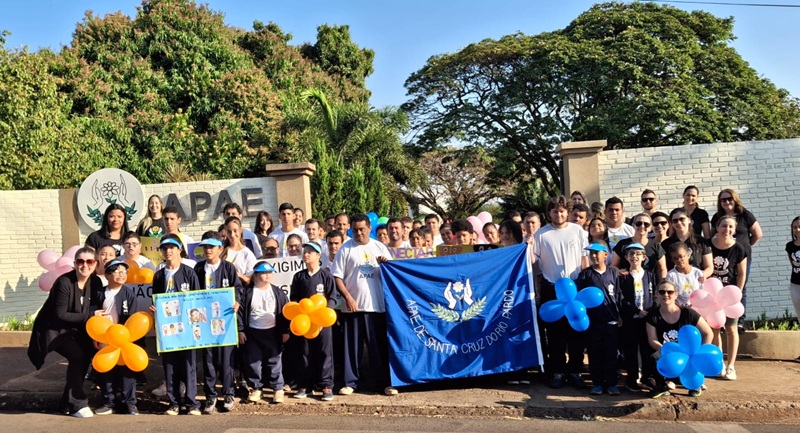 Em celebração à Semana Nacional da Pessoa com Deficiência Intelectual e Múltipla, a Apae de Santa Cru do Rio Pardo promoveu na manhã de quinta-feira (21) a Caminhada Inclusiva, reunindo professores, alunos da instituição e estudantes da escola Zilda Comegno Monti e da Etec. Os participantes saíram da Apae, fizeram breve concentração na praça da igreja São Benedito, onde se encontraram com alunos do ensino fundamental e de técnico em enfermagem. De lá, cerca de 60 pessoas partiram, com cartazes, bexigas e batucada até a praça do Jardim, em frente a Prefeitura.
