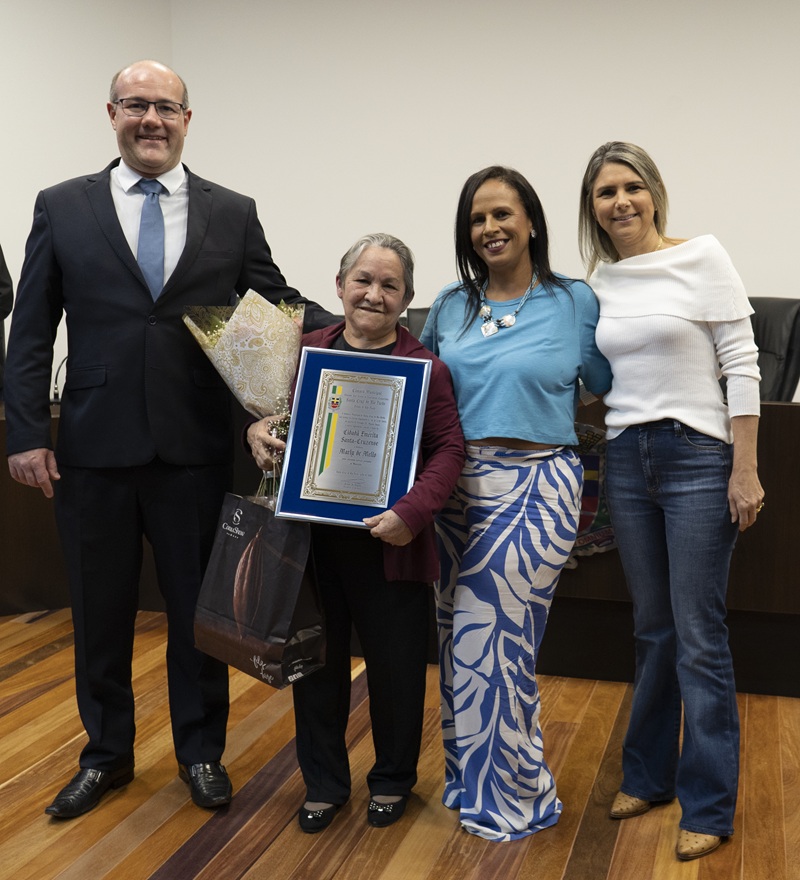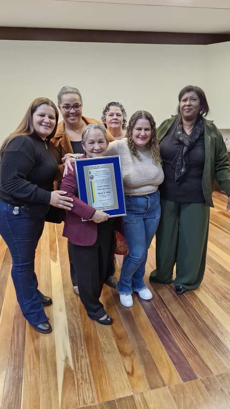 A professora Marly de Mello, 72 anos, recebeu na noite de sexta-feira (15), em sessão solene na Câmara Municipal, o título de Cidadã Emérita de Santa cruz do Rio Pardo. A honraria, proposta pelo vereador Mauro Assis e aprovada por unanimidade, veio em reconhecimento aos anos de magistério e dedicação às crianças da Escola Infantil Antônio Manfrin. A cerimônia contou com a presença de familiares, amigos, vereadores e do prefeito Otacílio Assis. A homenagem, segundo o vereador Mauro Assis, é um gesto de gratidão da cidade pelo compromisso que Marly demonstrou com a comunidade escolar ao longo dos anos.