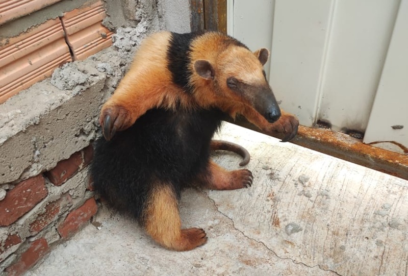 Animal Silvestre Uma ocorrência inusitada movimentou a manhã desta sexta-feira (31) em Santa Cruz do Rio Pardo. A equipe do Corpo de Bombeiros foi acionada para realizar o resgate de um tamanduá-mirim (Tamandua tetradactyla) no quintal de uma casa no Jardim Fátima. O animal silvestre foi encontrado pelo morador da residência. O tamanduá foi encontrado saudável e sem ferimentos.