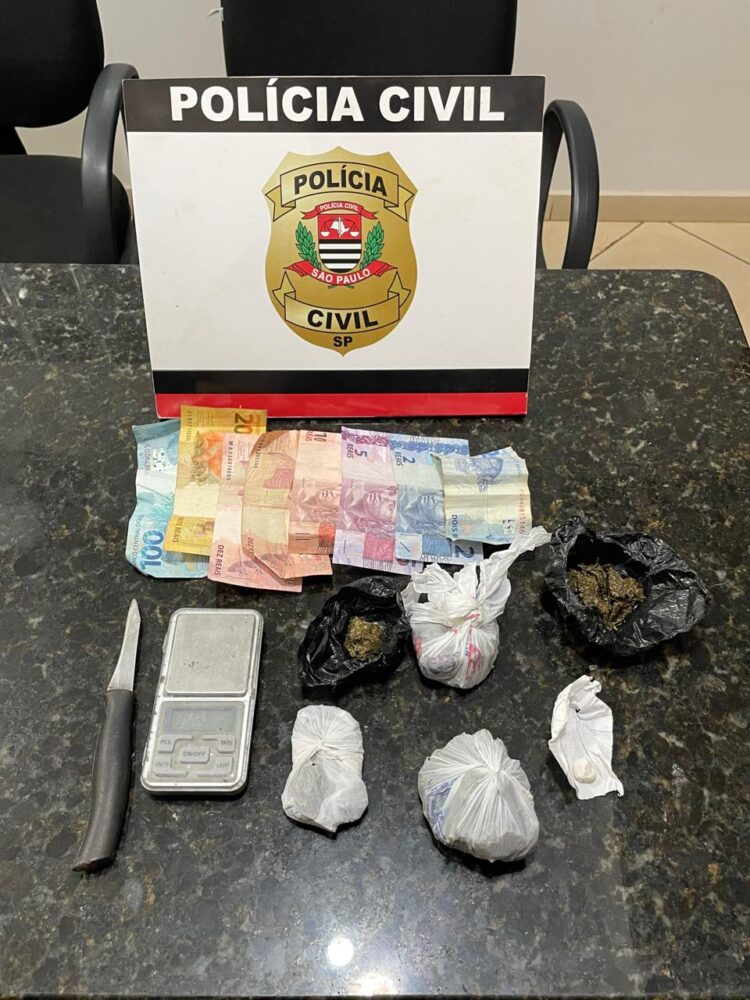 Resultado da operação: 40,6 gramas de maconha, outras 24 gramas de cocaína e 7 gramas de crack, acondicionadas em mais de 60 papelotes prontos para a venda. Três celulares e pouco mais de R$ 360 também foram apreendidos.