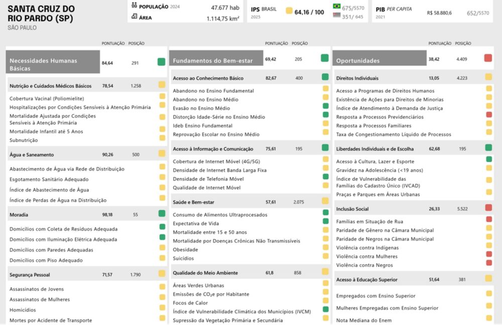Scorecard Santa Cruz do Rio Pardo (SP) – IPS Brasil 2025